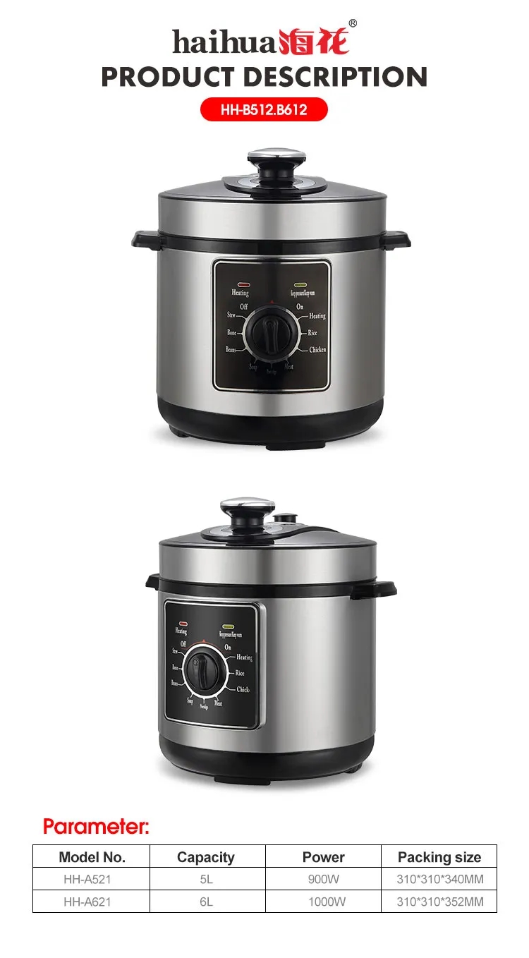 Home > Electric Pressure Cooker > HH-B512 ODM/ODM Factory Custom 5L Multi-Function Automatic Electric Pressure Cooker Restaurant Kitchen Electric Rice Cooker